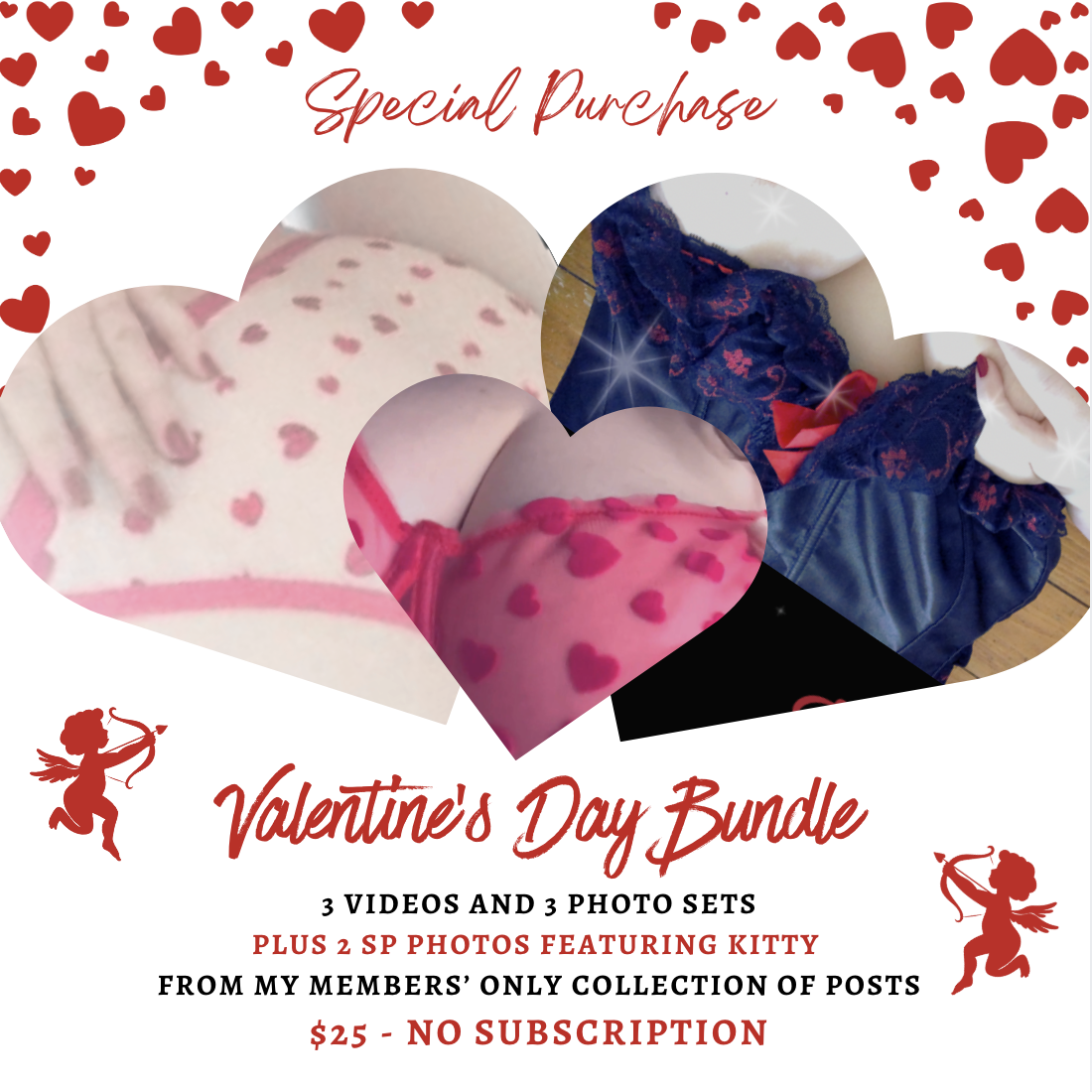Special Purchase Photo Sets are extended versions of the photo sets I post on my visual platforms. They feature glimpses of my kitty - nothing too graphic, just some frontal nudity. They are one-time purchases, no membership required. (I host these photos on my sister site, bimgirls.com)